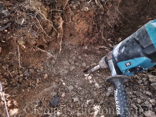 スコップでは勿論掘ることが出来ないため、ドリルで掘っています