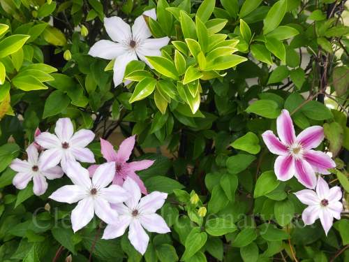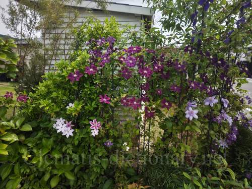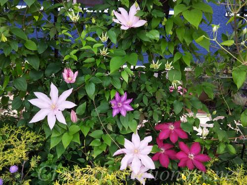 いろいろなクレマチスが共演しています。