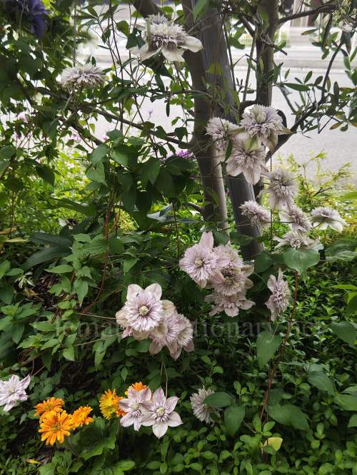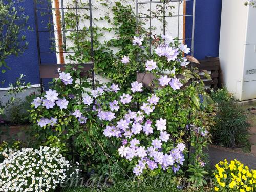 パストラーレは低いところからも咲くクレマチスのため、矮性のクレマチスともコラボします。
