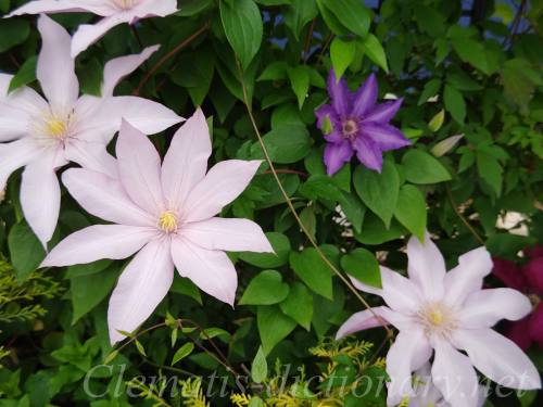 サマリタンジョーとガイディング・プロミスは開花時期もほぼ同時でコラボさせやすいクレマチスです。