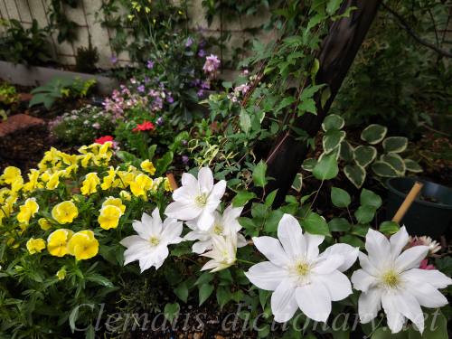 低いところからも咲くクレマチスで1年草ともコラボします。