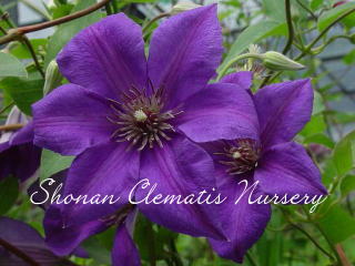 『ビロードのような深い紫色と整った花形が美しい。バラと相性が良い。』 (クレマチーヌさん)