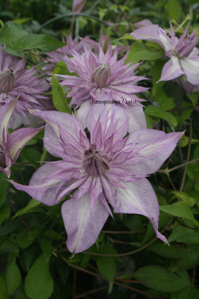 『エヴィソン社さまのクレマチスの中でも爽やかで1番好きな品種です。セミダブルの花弁の立体的な重なりと、花首の長さが相まって、風が吹くとキネティックアートのように煌めき、さざめいて見飽きないところ。花色もラベンダーからピンク、白へと変わり、株が充実すると花嫁のドレスのような瀟洒な花容になります』 (yukizenさん)