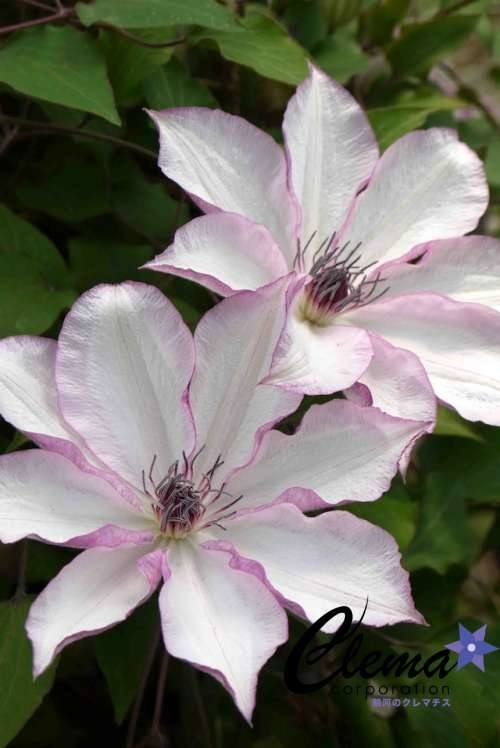 『白花にうっすらピンクが入るところがなんとも言えずきれい。花付きもよく、梅雨時期まで咲く唯一の大輪系の白花』 (たつさん)