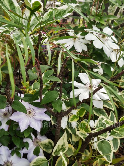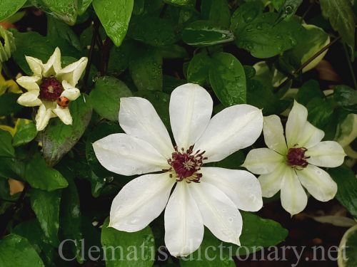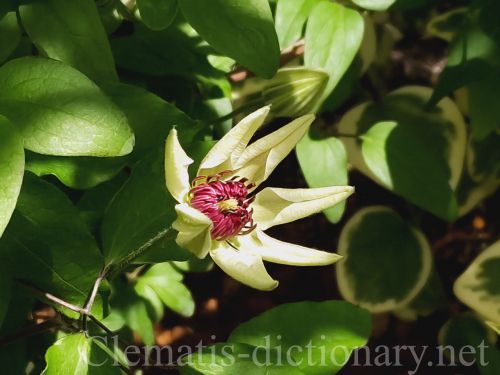 咲き始めはうっすら黄色がかった白色で中央の花芯の主張がすごく印象的なクレマチス