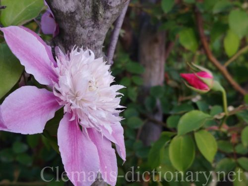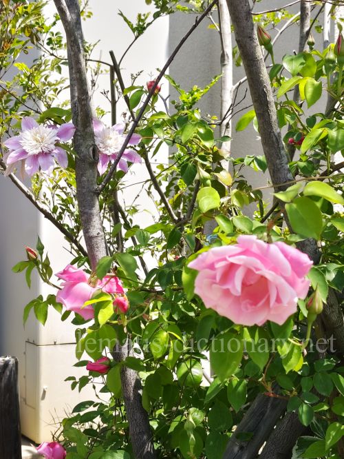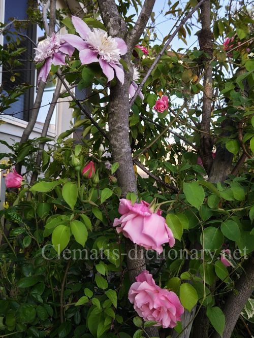 患者さんに頂いたピンクのツルバラと共演です