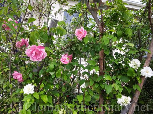遅咲き大輪系の咲き始めと少しの間一緒に咲いています