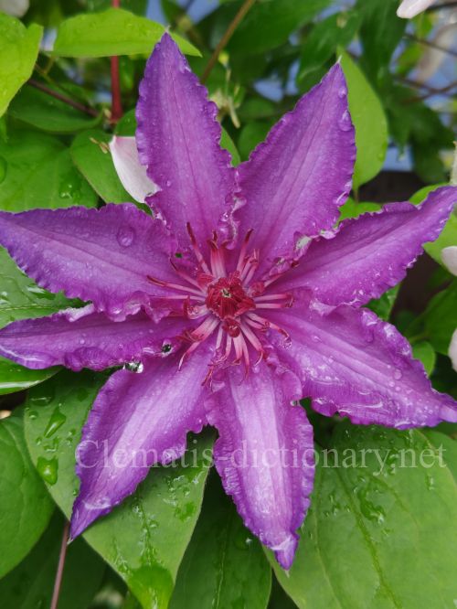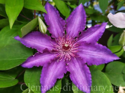 きれいな青紫の剣弁花で他との調和がしやすいクレマチスです
