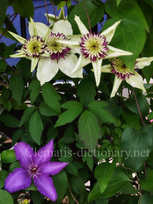 マリアルイーズイェイゼンはきれいな青紫のクレマチスで落ち着いているため他の花とも調和しやすいです