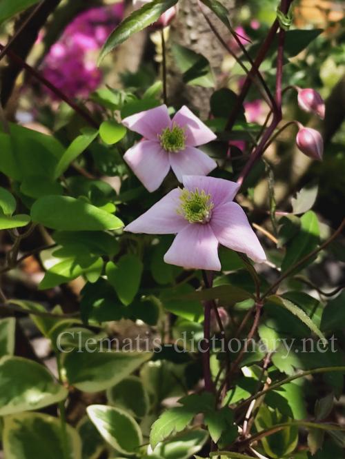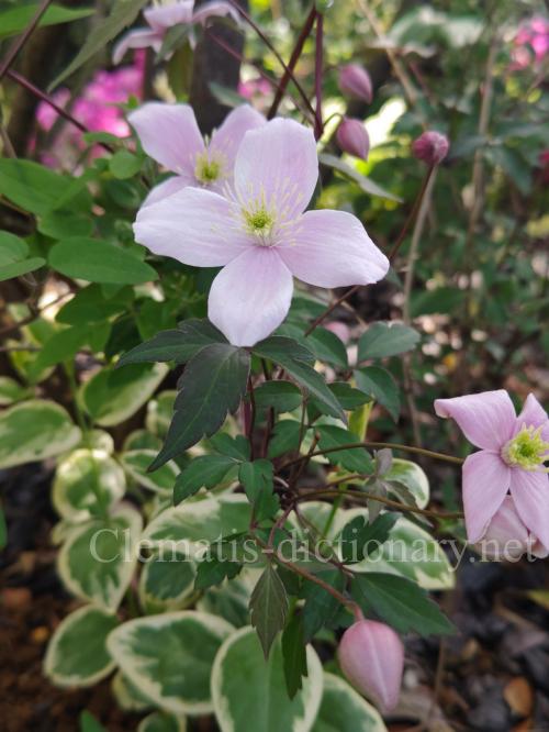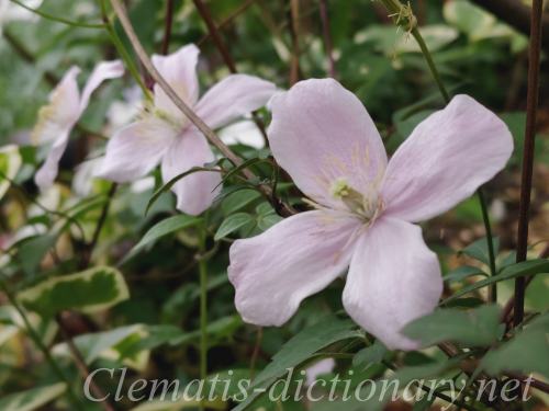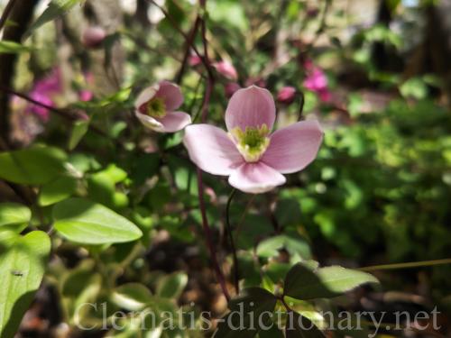 淡いピンク色で花弁の外側が白っぽくなり愛らしいモンタナ系当院ではまだ株が小さい(2023年)夏越し出来るか、また出来たとしても長生きしてくれるか
