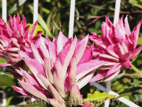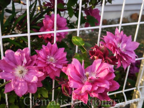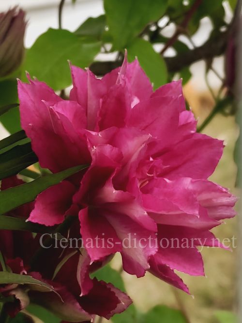 完全八重花の赤ピンクのクレマチス