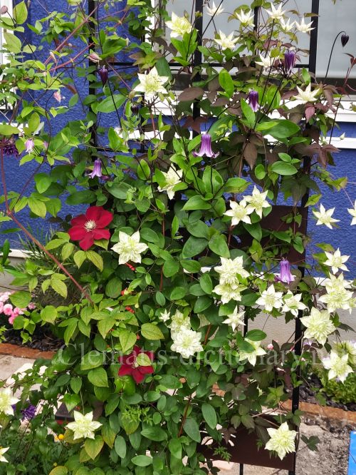 どんなクレマチスとも似合う多花性のインテグリフォリア系ロウグチでした