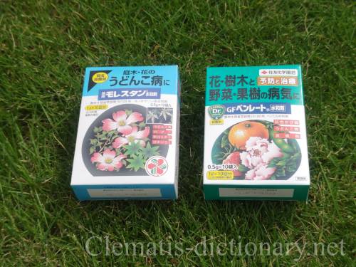 クレマチスの害虫対策、病気の消毒、肥料についておすすめの用品を書いてあります。他の植物にも使用できます。