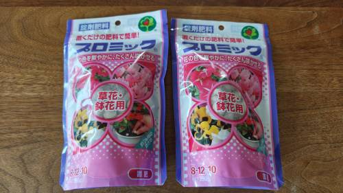 鉢や地植えの時の置き肥・追肥用に使用しています。窒素:リン酸:カリウム 10:10:10と少し濃度は高めですが、ゆっくり溶けるので安心です。