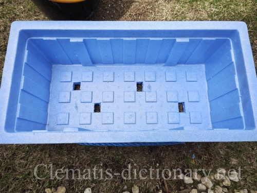 ①発泡スチロールの箱の底に穴を何か所かあける