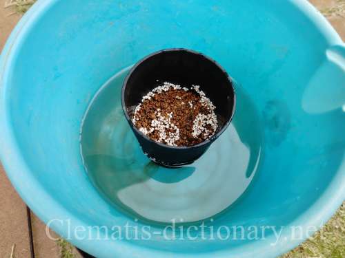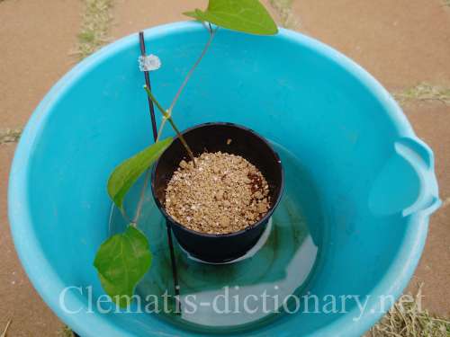 鉢の上からかけずに、バケツの水かさを上げた方がしっかり水につかります。