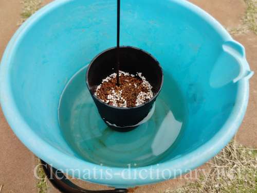 もし挿し穂が短くて、鉢の半分までしか刺さっていない場合は、こし水もバケツの半分くらいまでいれます。