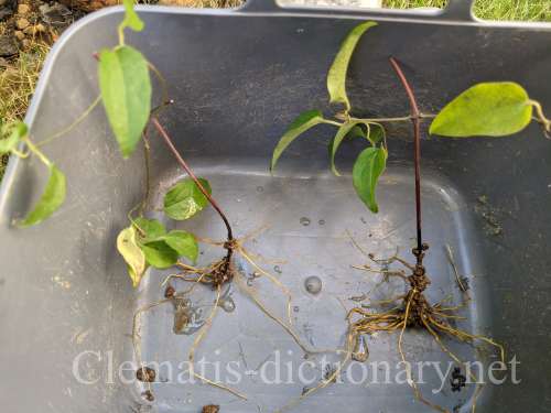 (注)パテンス系のカザグルマの血が濃い品種は、節からしか根が出ないので、1節挿しは成功率が低いと思います。